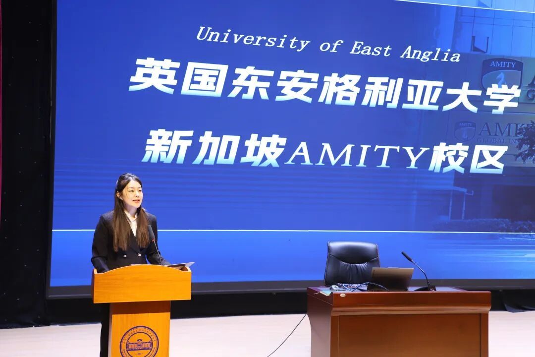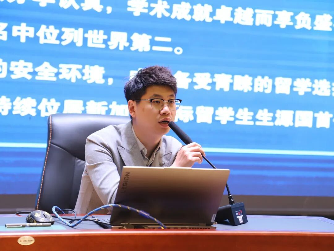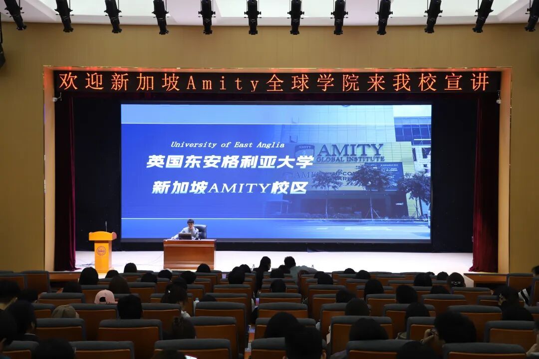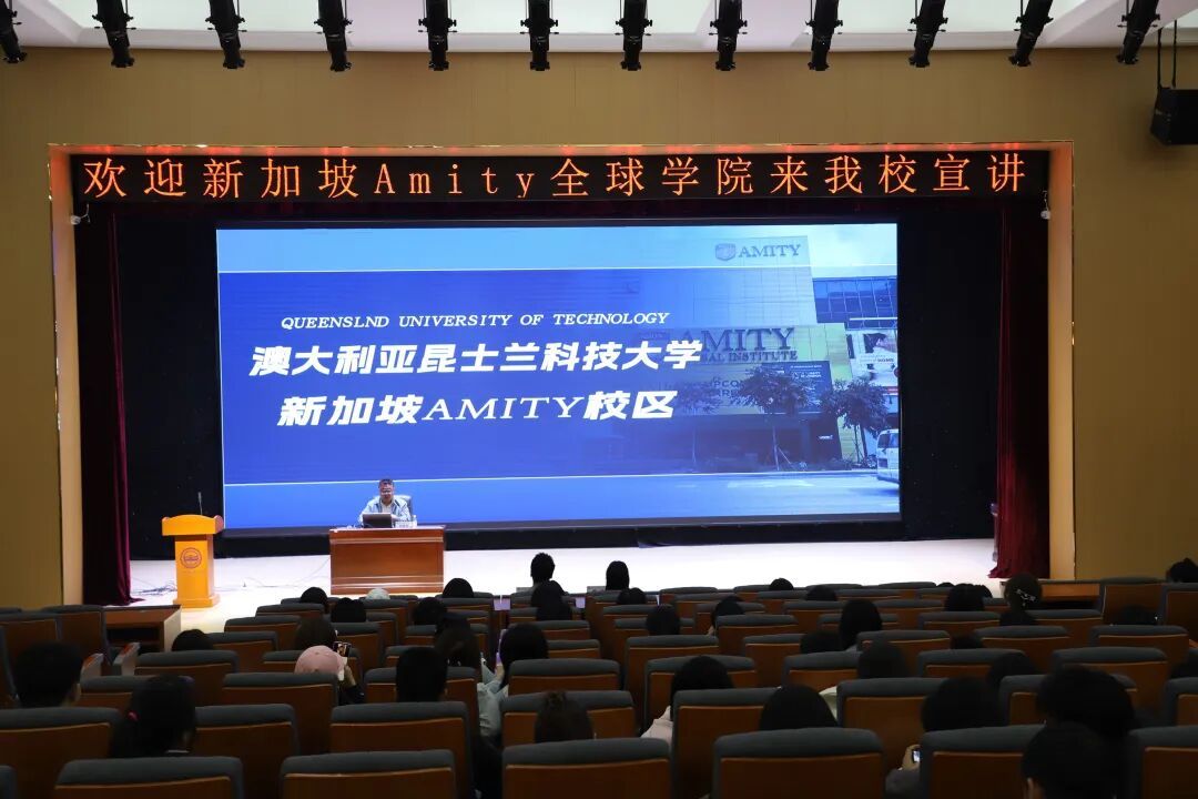 随后,王浩洋博士和刘睿聪博士在博学楼报告厅分别为我校经济与管理学院、计算机科学与工程学院的学生举行了宣讲会,两位博士详细讲解了两校(新加坡AMITY校区)专业课程设置、学科优势、校园环境、招生要求以及申请流程等。通过宣讲,同学们对两校的新加坡AMITY校区有了全面而深入的了解,这为双方未来在学术交流、学生互访、联合培养等方面奠定了坚实的基础,也为同学们提供了更广阔的国际视野和更多的发展机会。